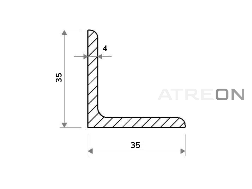 Hliníkový L profil 35x35x4 (EN 6060) patrí medzi profilovú hliníkovú oceľ rovnostranného prierezu L zliatiny EN 6060 a tvrdosti T6. Tento hliníkový uholník je známy i pod pojmom hliníkový vinkel. Tieto hliníkové profily majú nižšiu hmotnosť než oceľové L profily. Používajú sa v kovovýrobe, zámočníckych dielňach a tiež v stavebníctve. Tento hliníkový L profil rovnoramenný so šírkou 35 mm a hrúbkou steny 4 mm je dodávaný vo výrobných dĺžkach po 6 m, s hmotnosťou 4,26 kg. Váha produktu na 1 m je 0,71 kg.