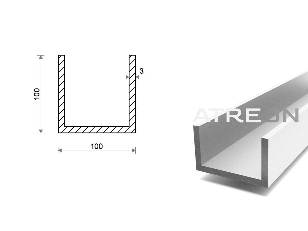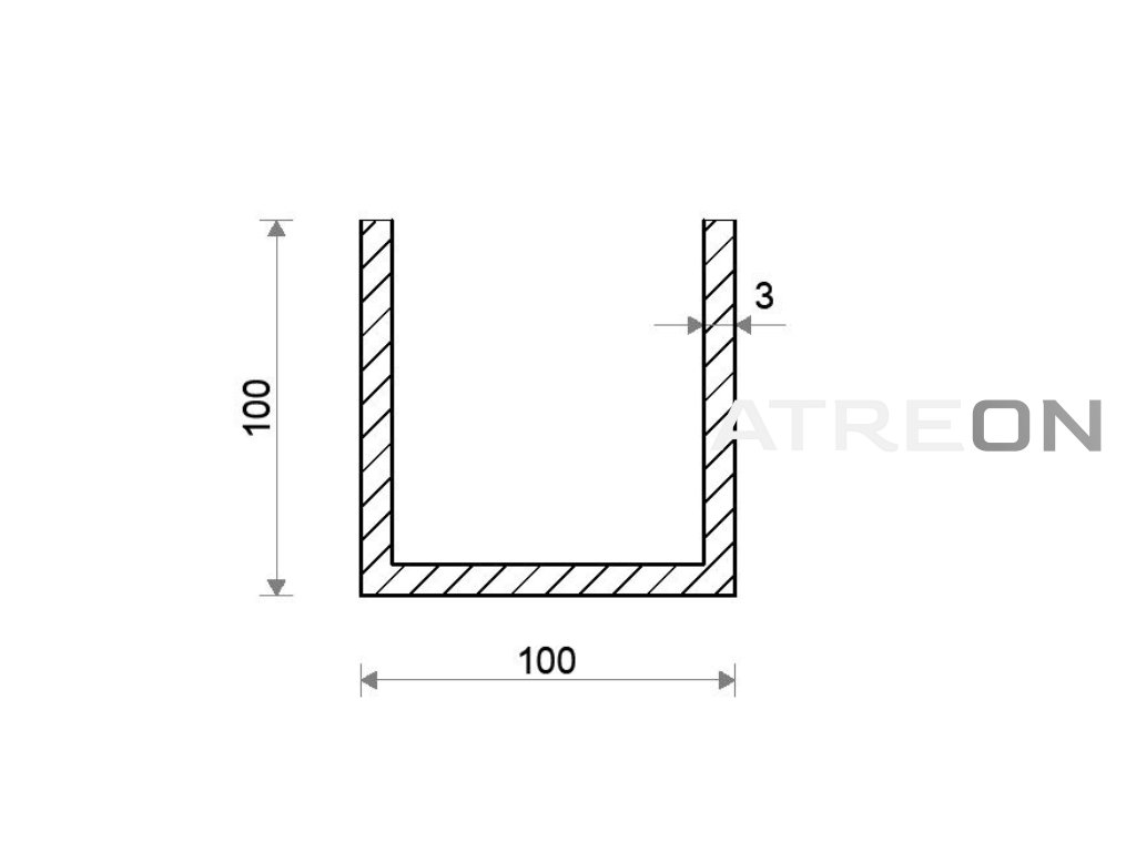 Hliníkový U profil 100x100x100x3 je otvorený hliníkový U profil zliatiny EN 6060 a tvrdosti T6 so zaručenou zvariteľnosťou. Je ohýbaný so zaoblenými hranami. Využitie má predovšetkým v stavebníctve a zámočníckej činnosti. Ich hlavnou výhodou je ich nižšia hmotnosť v porovnaní s jaklami vyrobenými z bežnej ocele. Tento hliníkový jokel s výškou 100 mm, šírkou ramena 100 mm a hrúbkou steny 3 mm je dodávaný v štandardnej výrobnej dĺžke 6 m s hmotnosťou 14,28 kg. Váha produktu na 1 m je 2,38 kg.