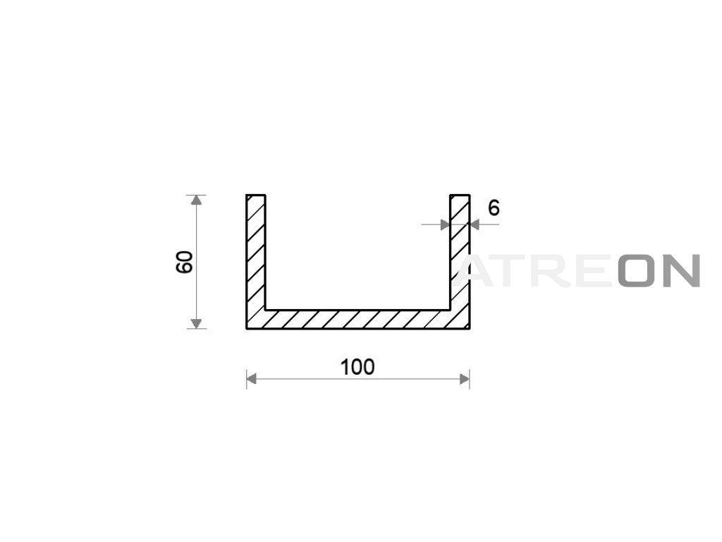 Hliníkový U profil 60x100x60x6