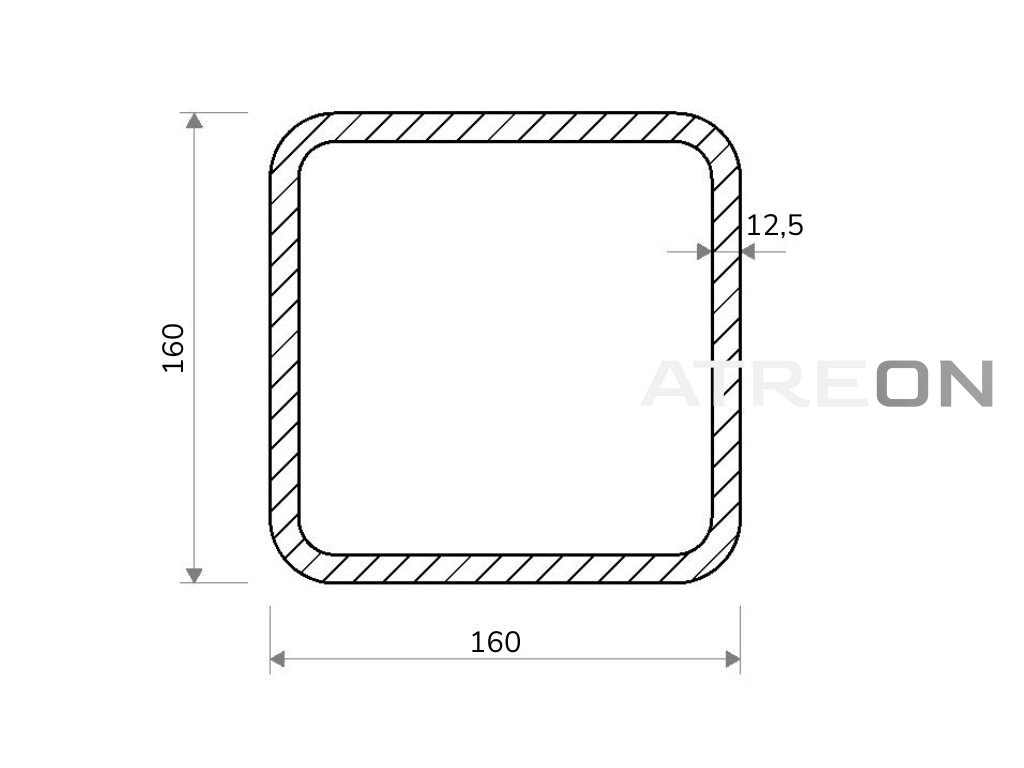 Jokel 160x160x12,5 (S355) je štandardne zváraný uzavretý oceľový profil štvorcového tvaru valcovaný za studena v akosti S355. Široké spektrum využitia v stavebníctve a zámočníctve, a tiež v technických odboroch. Tento štvorcový jokel 160x160 s hrúbkou steny 12 mm je dodávaný vo výrobnej dĺžke 6 m. Hmotnosť produktu je 347,40 kg. Hmotnosť produktu na 1 m je 57,9 kg.