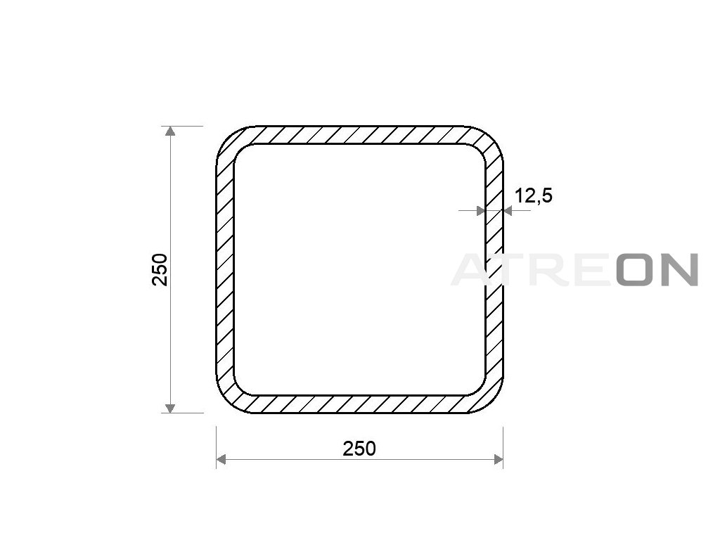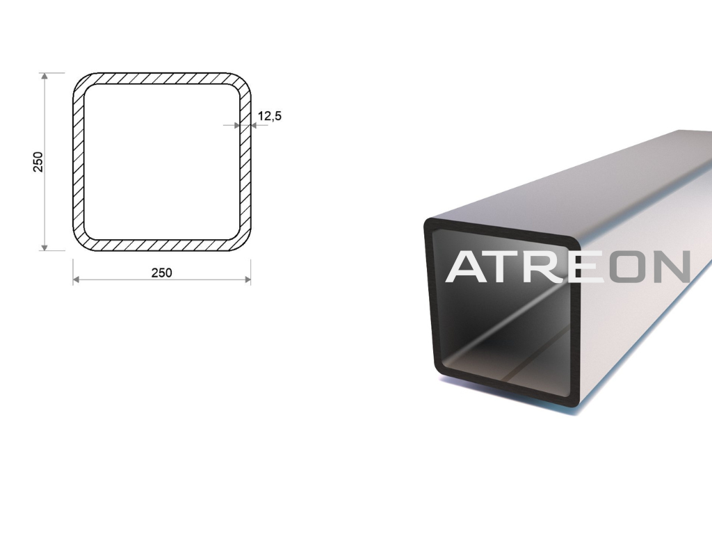 Jokel 250x250x12,5 (S355) je štandardne zváraný uzavretý oceľový profil štvorcového tvaru valcovaný za studena v akosti S355. Široké spektrum využitia v stavebníctve a zámočníctve, a tiež v technických odboroch. Tento štvorcový jokel 250x250 s hrúbkou steny 12 mm je dodávaný vo výrobnej dĺžke 6 m. Hmotnosť produktu je 528 kg. Hmotnosť produktu na 1 m je 88 kg.