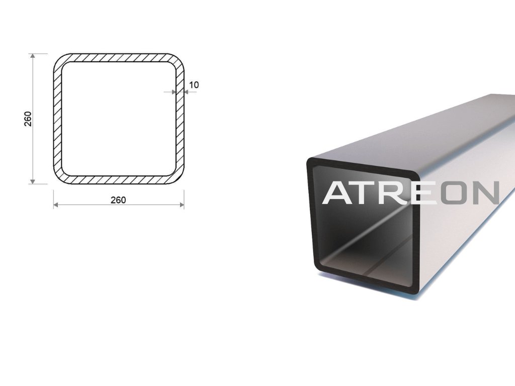 Jokel 260x260x10 (S355) je štandardne zváraný uzavretý oceľový profil štvorcového tvaru valcovaný za studena v akosti S355. Široké spektrum využitia v stavebníctve a zámočníctve, a tiež v technických odboroch. Tento štvorcový jokel 260x260 s hrúbkou steny 10 mm je dodávaný vo výrobnej dĺžke 6 m. Hmotnosť produktu je 471 kg. Hmotnosť produktu na 1 m je 78,5 kg.