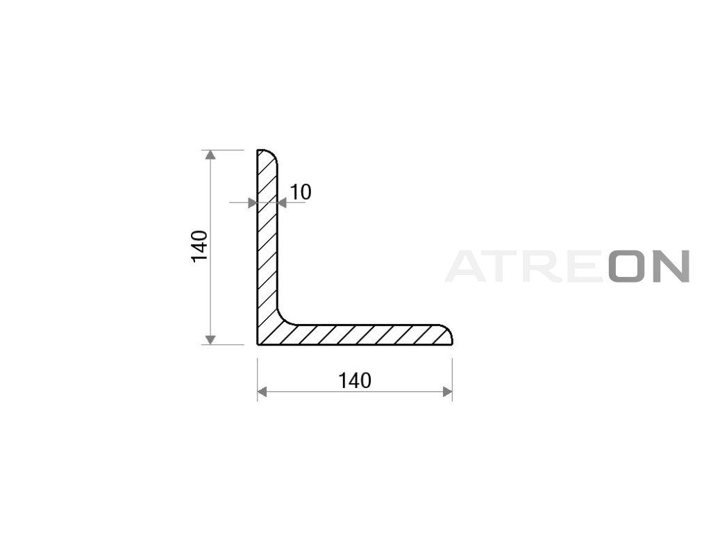 | Alternatívne názvy: | Oceľový uholník 140x140x10 (S355), Kovový uholník 140x140x10 (S355) |