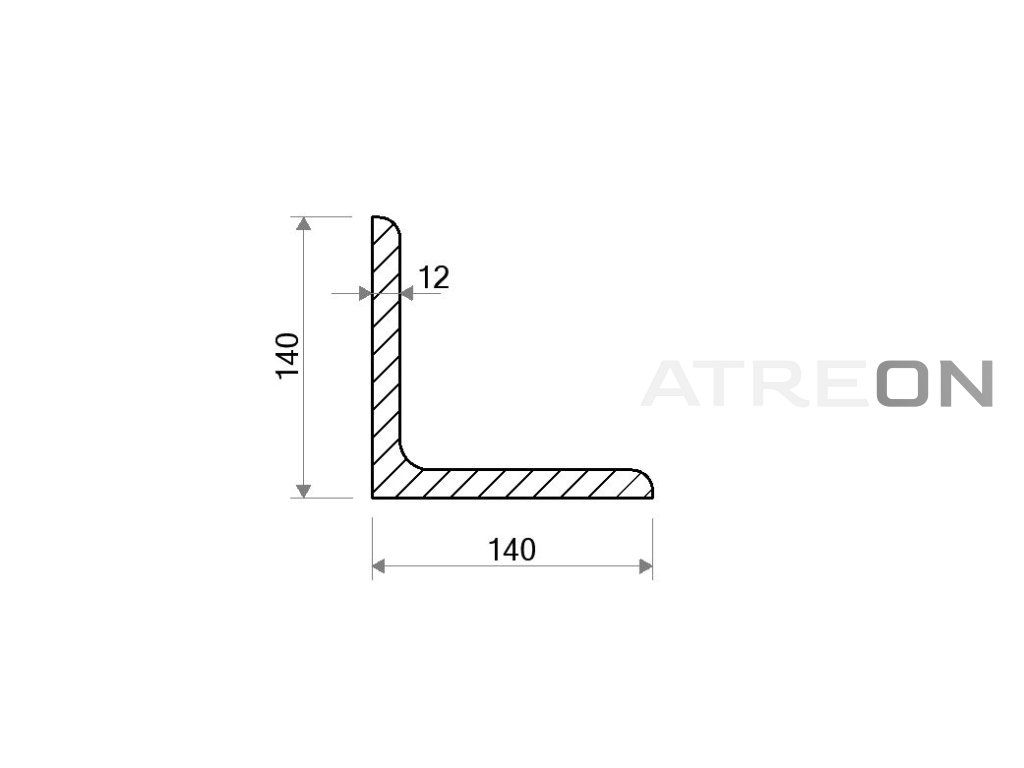 | Alternatívne názvy: | Oceľový uholník 140x140x12 (S355), Kovový uholník 140x140x12 (S355) |