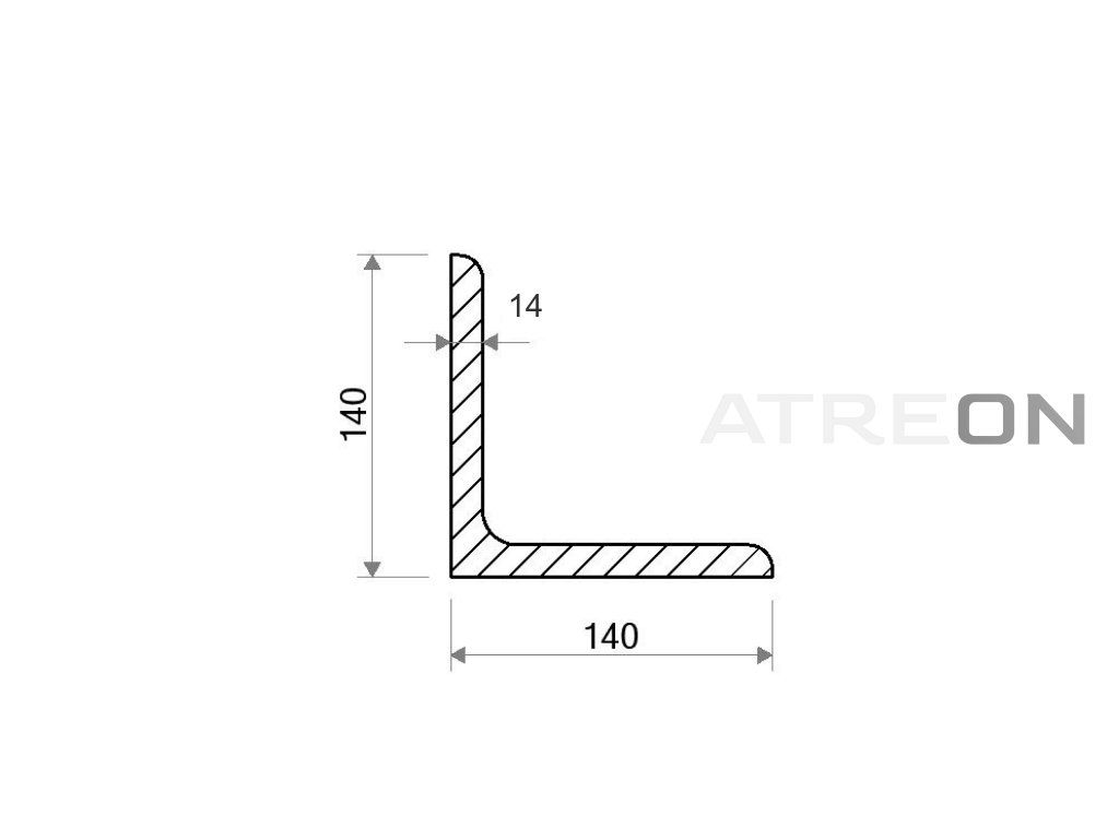 | Alternatívne názvy: | Oceľový uholník 140x140x14 (S355), Kovový uholník 140x140x14 (S355) |