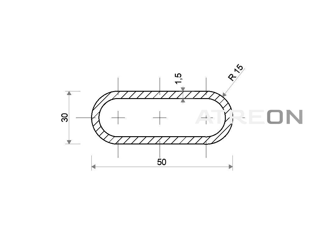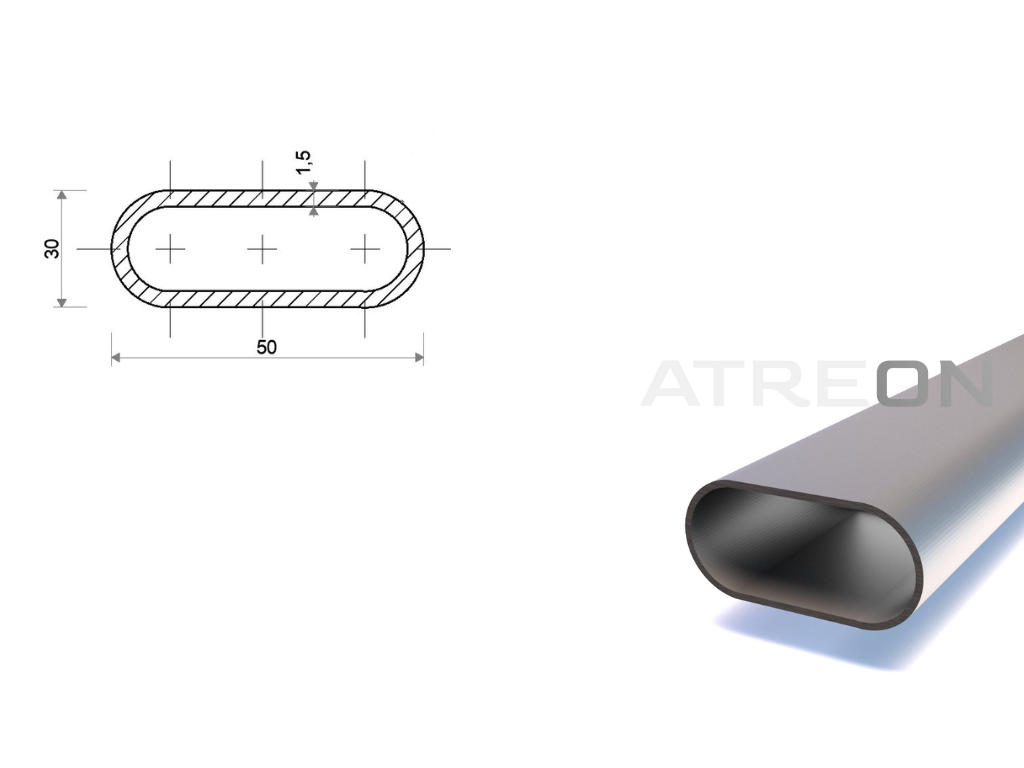 Oceľová oválna rúra 50x30x1,5 je štandardne zváraný typ oceľovej rúry (profilu), ktorý má plochooválny prierez. Je typický vysokou pevnosťou, nízkou hmotnosťou a estetickým vzhľadom. Využitie nachádza najmä v stavebníctve, strojárstve a priemysle. Plochoovál so šírkou profilu 50 mm, výškou profilu 30 mm, hrúbkou 1,5 mm a hmotnosťou 9,12 kg sa dodáva v štandardnej výrobnej dĺžke 6 m v akosti S235. Hmotnosť na 1 m je 1,52 kg.