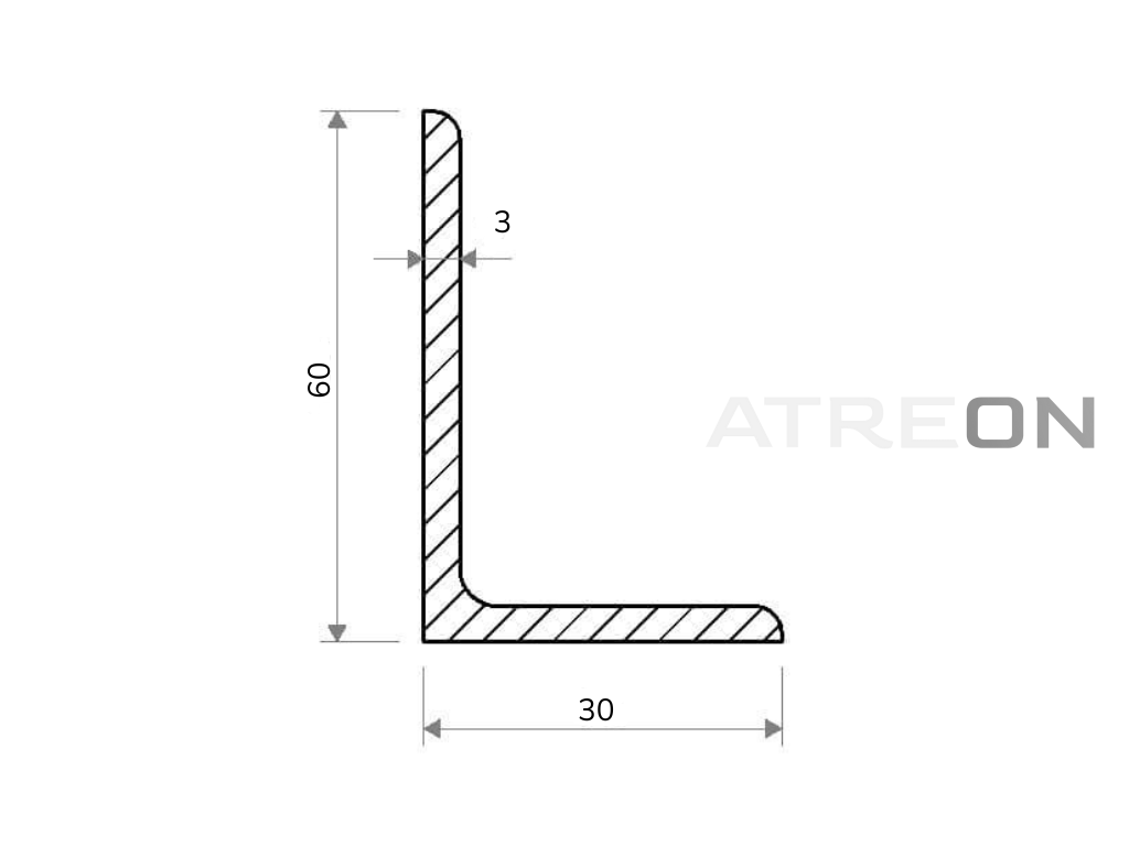 | Alternatívne názvy: | Ohýbaný uholník 60x30x3 |