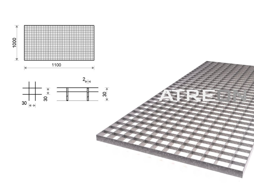 Pozinkovaný rošt lisovaný 1000x1100 mm, oko 30x30 mm