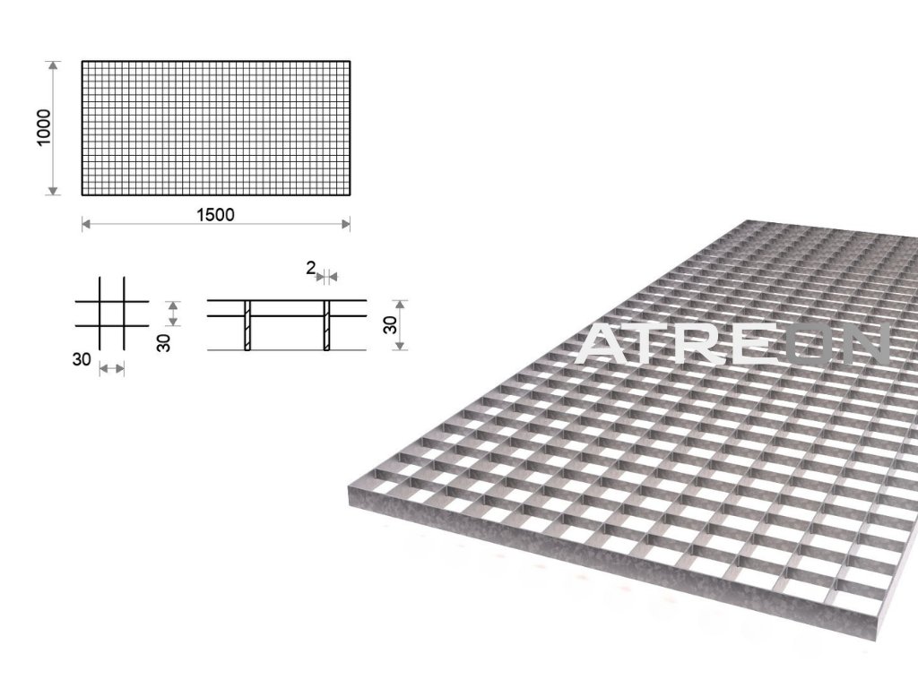 Pozinkovaný rošt lisovaný 1000x1500 mm, oko 30x30 mm