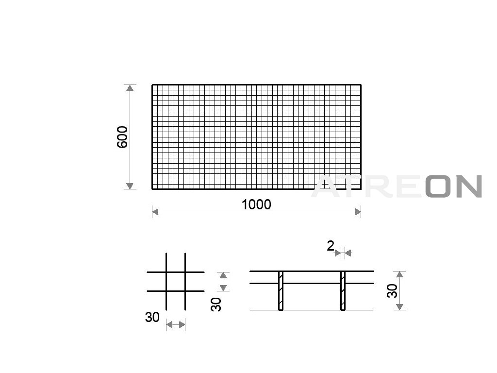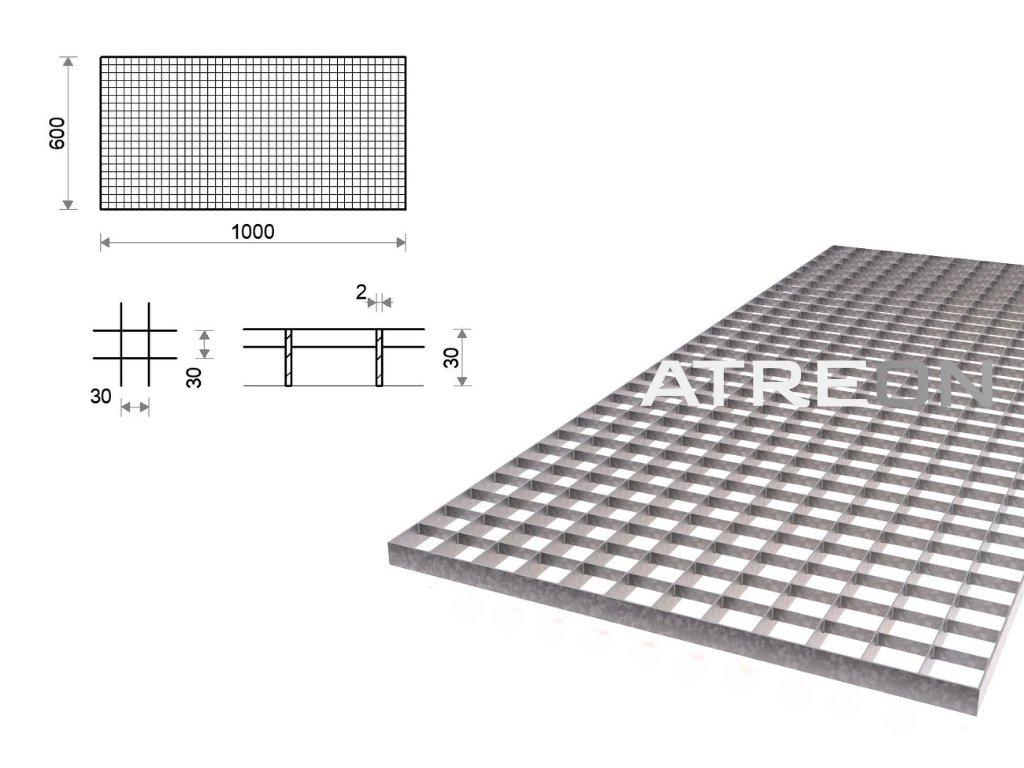 Alternatívne názvy: | Pororošt 600x1000 mm, oko 30x30 mm, kovový rošt 600x1000 mm, oko 30x30 mm, podlahový rošt 600x1000 mm, oko 30x30 mm |