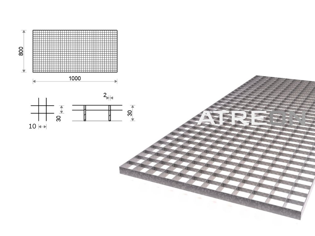 Pozinkovaný rošt lisovaný 800x1000 mm, oko 30x10 mm