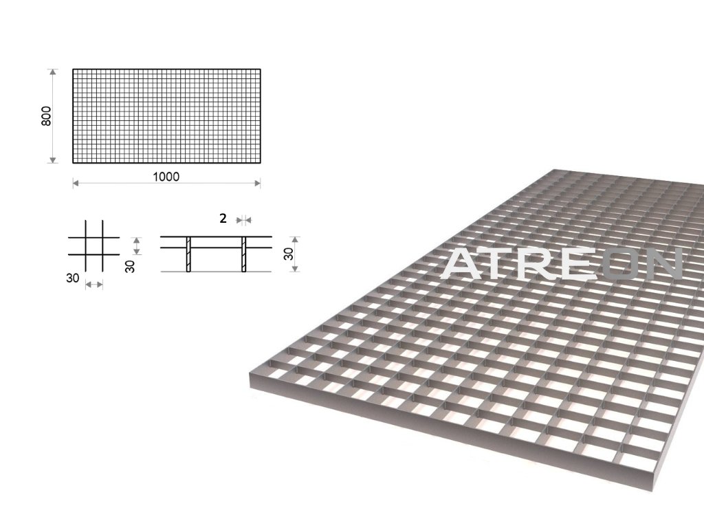 Alternatívne názvy: | Pororošt 800x1000 mm, oko 30x30 mm, kovový rošt 800x1000 mm, oko 30x30 mm, podlahový rošt 800x1000 mm, oko 30x30 mm |