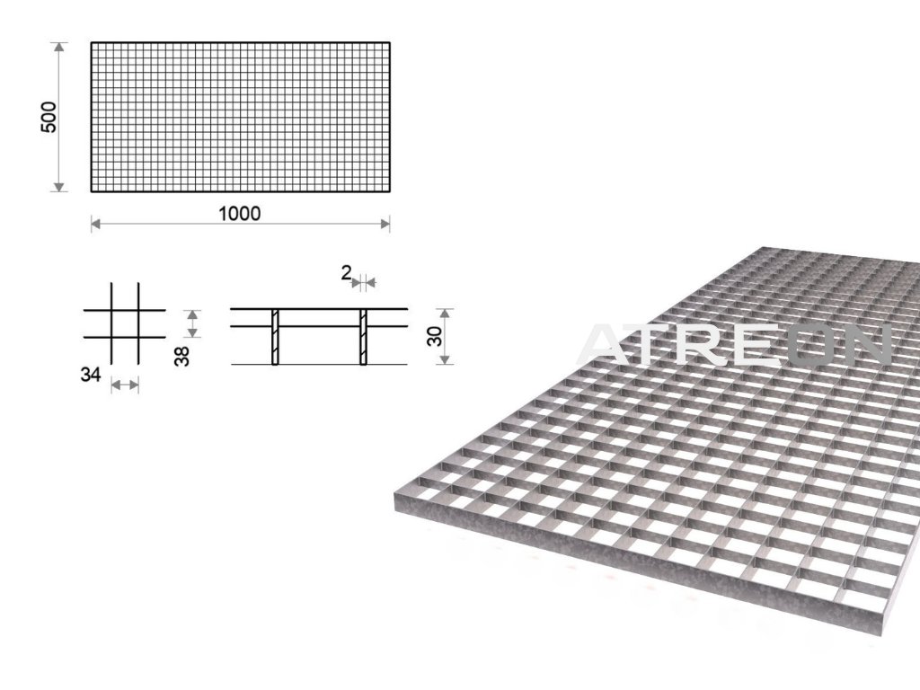 Pozinkovaný rošt zváraný 500x1000 mm, oko 34x38 mm