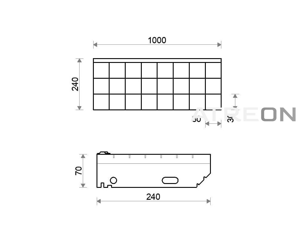 Pozinkovaný schodiskový stupeň lisovaný 1000x240 mm, oko 30x30 mm