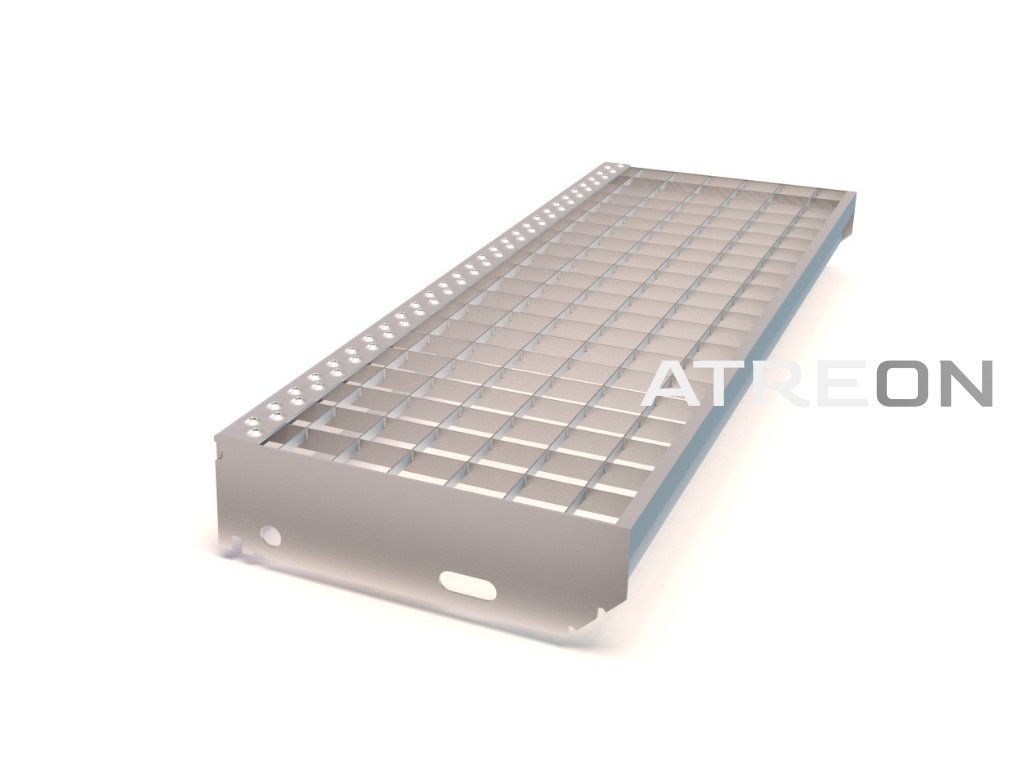 Pozinkovaný schodiskový stupeň lisovaný 700x270 mm, oko 30x30 mm