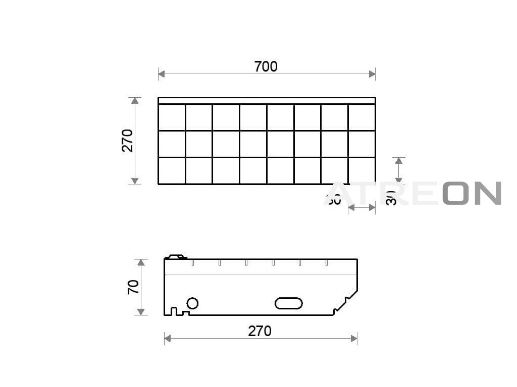 Schodiskový stupeň lisovaný 700x270 mm, oko 30x30 mm je vysoko kvalitný produkt určený na použitie na schodiskách a ďalších podobných aplikáciách, kde je potrebné zaistiť bezpečný a stabilný prístup. Ide o žiarovo pozinkovaný materiál, ktorý zabezpečuje odolnosť proti korózii a dlhú životnosť. Tento oceľový stupeň (nášľapná plocha) je ideálny pre vonkajšie prostredie, či už ide o priemyselné objekty, skladové priestory, komerčné budovy alebo rodinné domy. Schodiskový stupeň má dĺžku 700 mm a šírku 270 mm, čo zaisťuje dostatočný priestor na pohodlný a bezpečný krok. Otvory s rozmermi 30x30 mm poskytujú nielen požadovanú protišmykovosť, ale aj umožňujú efektívne odvodnenie, čo je dôležité najmä pre vonkajšie aplikácie. Oceľová schodnica je vyrobená z kvalitného oceľového materiálu, čo jej dodáva vynikajúcu pevnosť a dlhú životnosť. Je ideálnou voľbou pre miesta, kde je potrebná odolnosť voči mechanickému poškodeniu a poveternostným vplyvom. Pre maximálnu funkčnosť a estetiku odporúčame kombinovať tieto stupne s pororoštami (oceľovými roštmi), vďaka čomu získate kvalitné a praktické schodisko, ktoré je ideálne pre náročné prostredie, vrátane vonkajších a priemyselných oblastí. Hmotnosť produktu je 4,4 kg.