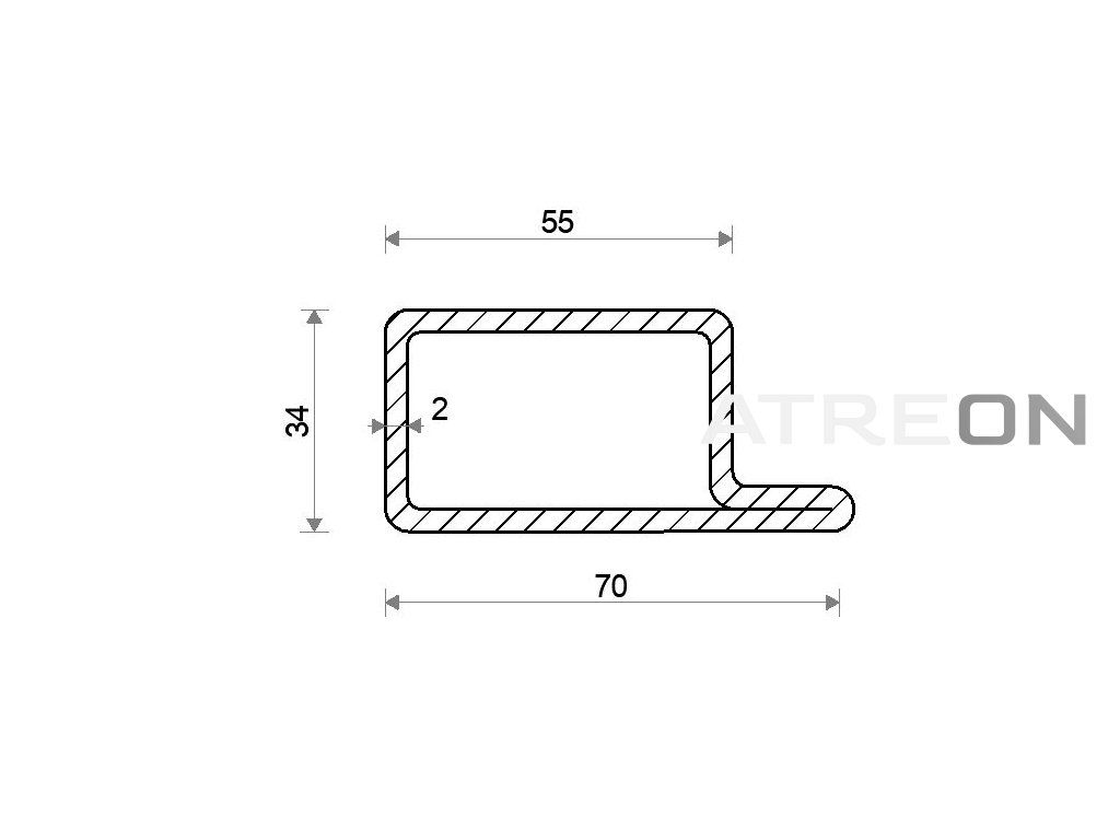 | Šírka profilu vrátane praporku (A): | 70 mm |