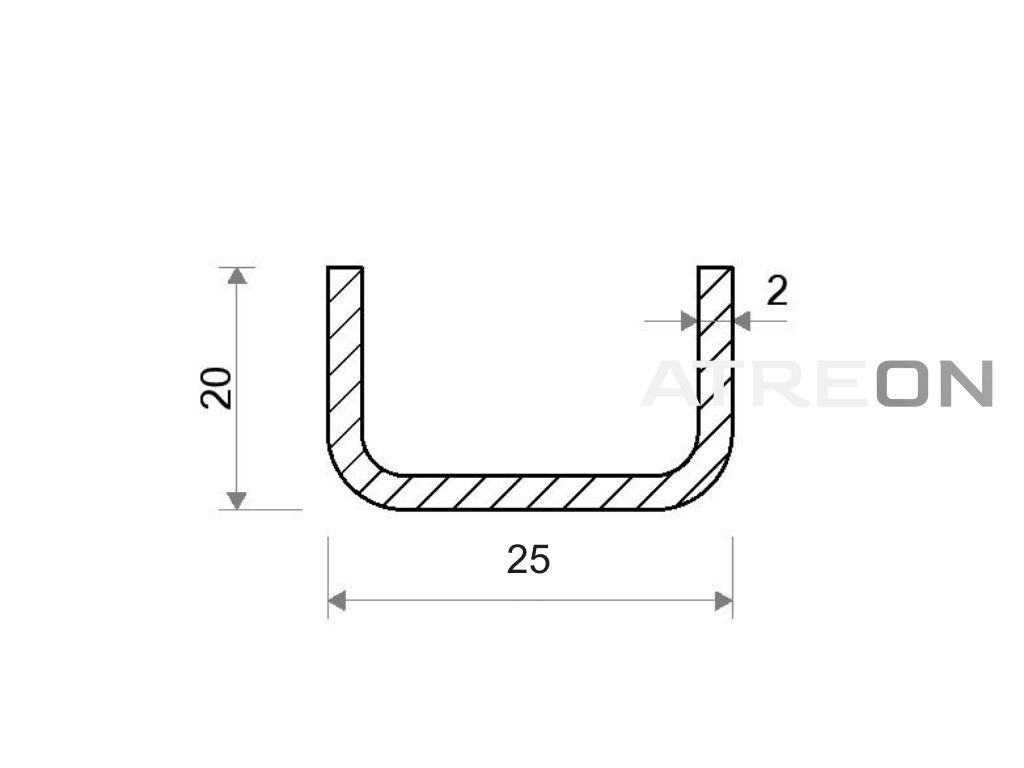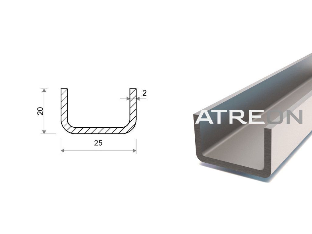 U profil pozinkovaný 20x25x20x2 je ohýbaný otvorený tenkostenný rovnostranný oceľový profil tvaru U v akosti DX51D, ohýbaný za studena a žiarovo pozinkovaný už počas výroby materiálu. Rovnomerná zinková vrstva zabezpečuje dobrú odolnosť proti korózii a dlhú životnosť pri bežnom vonkajšom použití. Je však vhodné mať na pamäti, že koncové hrany a miesta prípadného delenia zostávajú bez zinkovej vrstvy, keďže profily sa zinkujú vcelku u výrobcu. Profil nachádza využitie v konštrukciách, opláštení a ďalších stavebných či zámočníckych aplikáciách. Dodáva sa vo výrobnej dĺžke 6 m s hmotnosťou 6,18 kg, výškou 20 mm, šírkou profilu (základne) 25 mm a hrúbkou steny 2 mm. Hmotnosť produktu na 1 m je 1,03 kg.