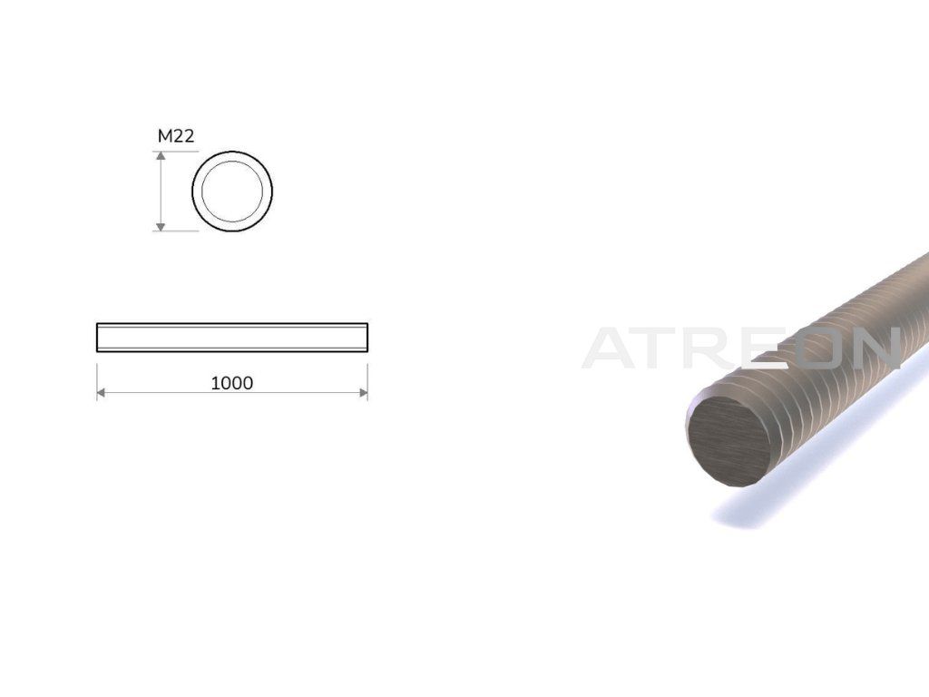 Pevnostná pozinkovaná závitová tyč M22 je dlhá kovová tyč s povrchovou úpravou zo zinku, vďaka ktorej je odolnejšia voči korózii než bežné čierne pevnostné závitové tyče. Hodnota 8.8 označuje jej tvrdosť, resp. pevnosť. Tyč je galvanicky pozinkovaná. Dodáva sa vo výrobnej dĺžke 1 m s priemerom 22 mm, hmotnosťou 2,6 kg v akosti DIN 976.